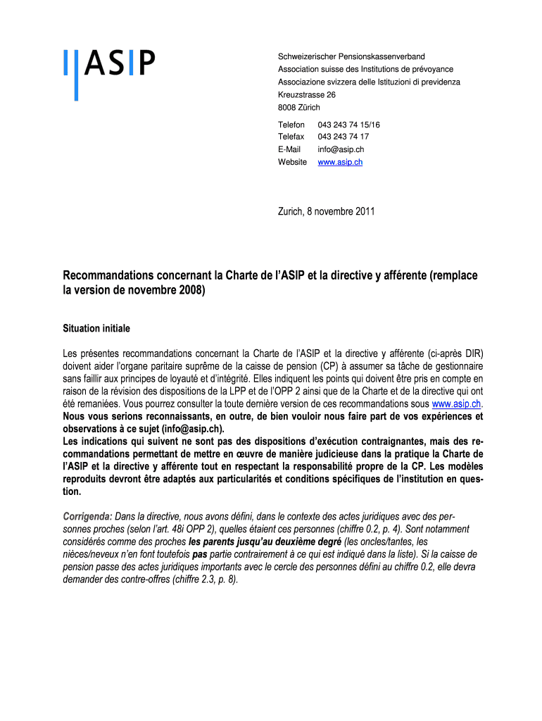 Obtenir le gratuit Recommandations concernant la Charte de l'ASIP et la directive y ... - asip