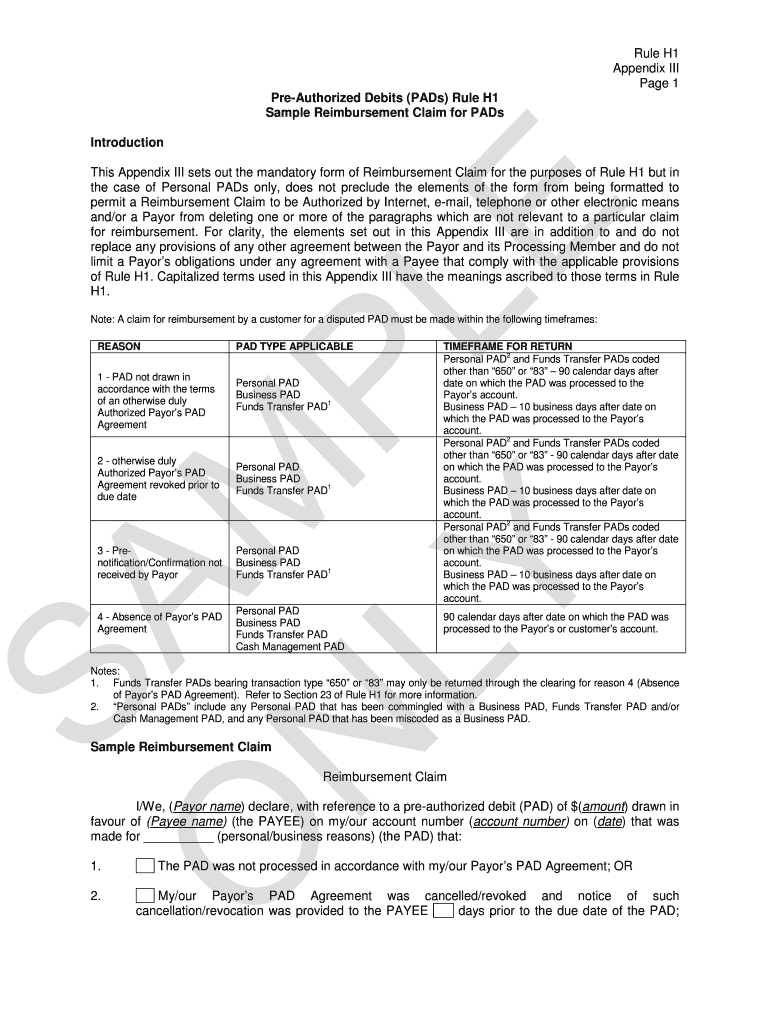 Get the free Sample Reimbursement Claim for PADs