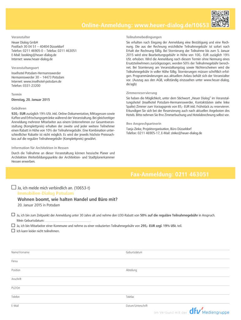 ImmobilienDialog Potsdam When built, we halted Handel UND Br omit? 20. January 2015 in Potsdam d Information: Amending UN log.DE×10653 www.heuerdia Wohnungsbau brunt her Sc huh draft I'm antigen