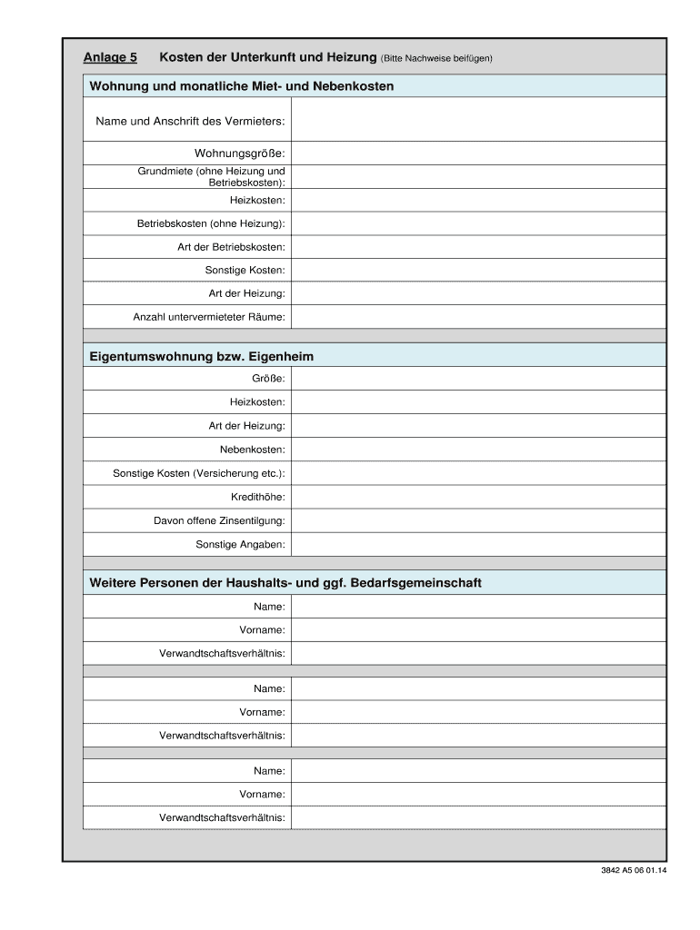 Holen Sie sich kostenlos Anlage 5 Kosten der Unterkunft und Heizung (Bitte Nachweise ...