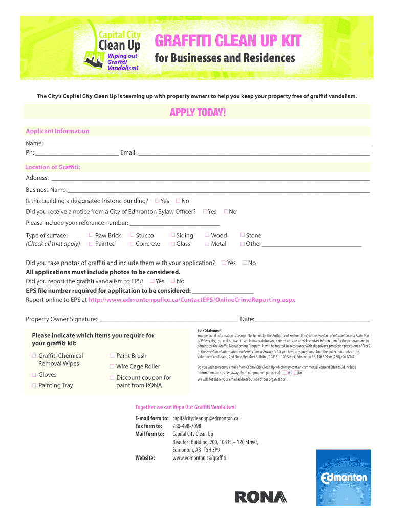 Get the free CCCU 2016 Graffiti Clean Up Kit Application bFormb PDF - edmonton
