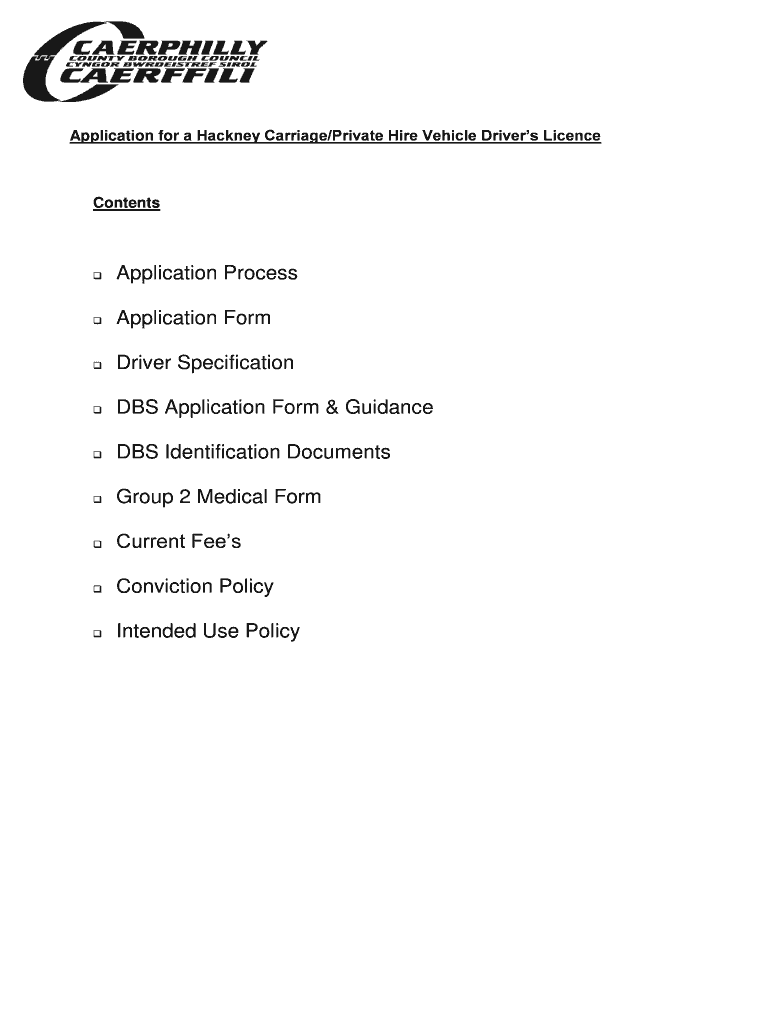 Application for a Hackney Carriage×Private Hire Vehicle Driver's License Contents Application Process Application Form Driver Specification DBS Application Form & Guidance DBS Identification Documents