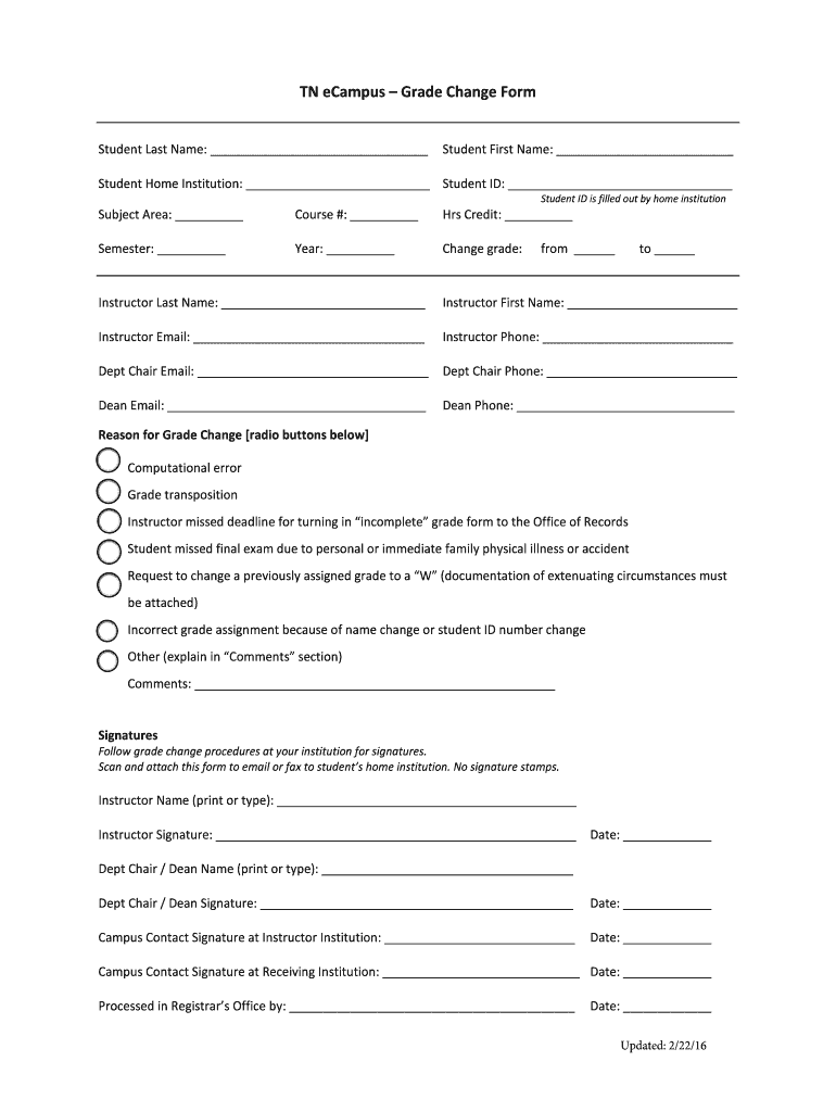 Get the free BTNb eCampus Grade Change bFormb - bTNb eCampusinfo - tnecampus