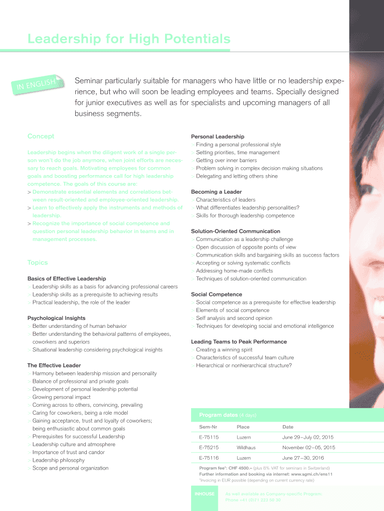 Seminar particularly suitable for managers who have little or no leadership experience, but who will soon be leading employees and teams. Specially designed