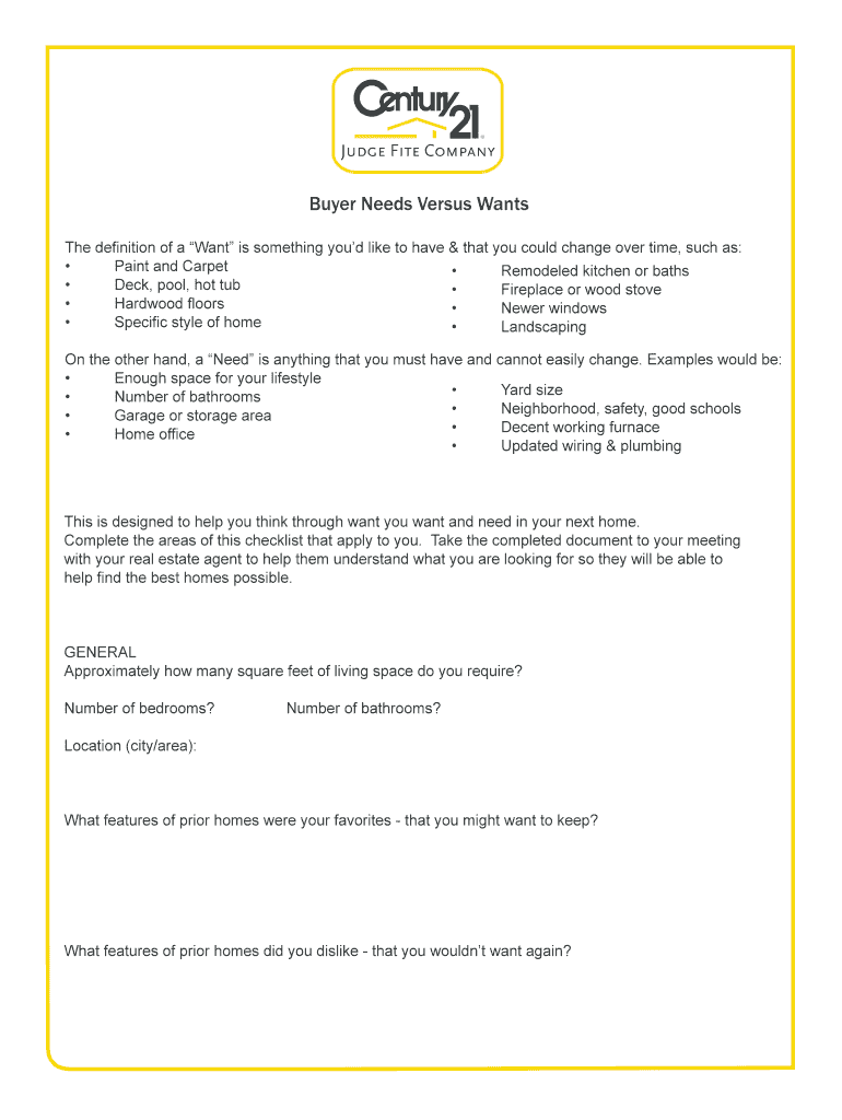 Buyer Needs Versus Wants is not the form you're looking for?Search for another form here.