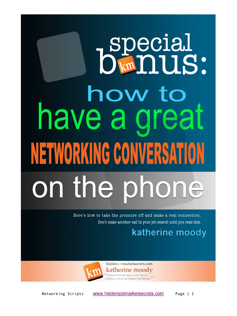 Networking Scripts.hiddenjobmarketsecrets.compare 1Go beyond networking and build the kind of real business relationships that will help you get into the hidden job market. Katherine Moody Your Guide