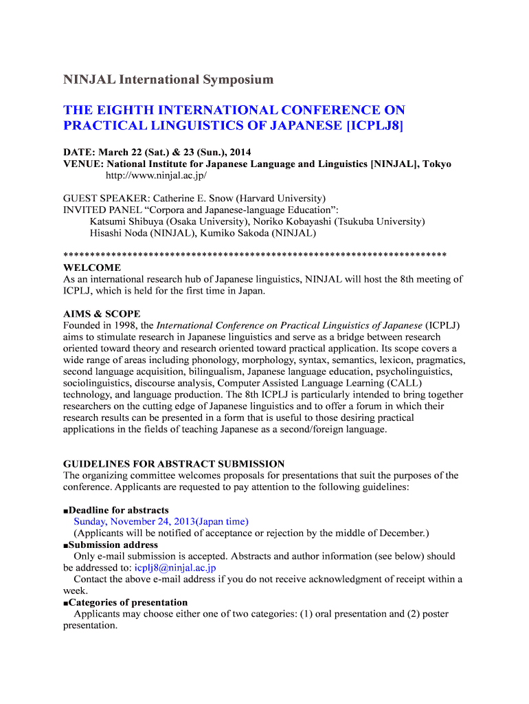 Ninjal International Symposium is not the form you're looking for?Search for another form here.