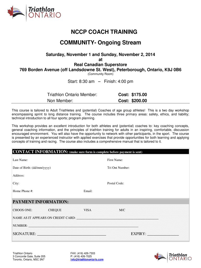 CCP COACH TRAINING COMMUNITY Ongoing Stream Saturday, November 1 and Sunday, November 2, 2014, at Real Canadian Superstore 769 Borden Avenue (off Sandstone St. West×, Peterborough, Ontario, K9J 0B6