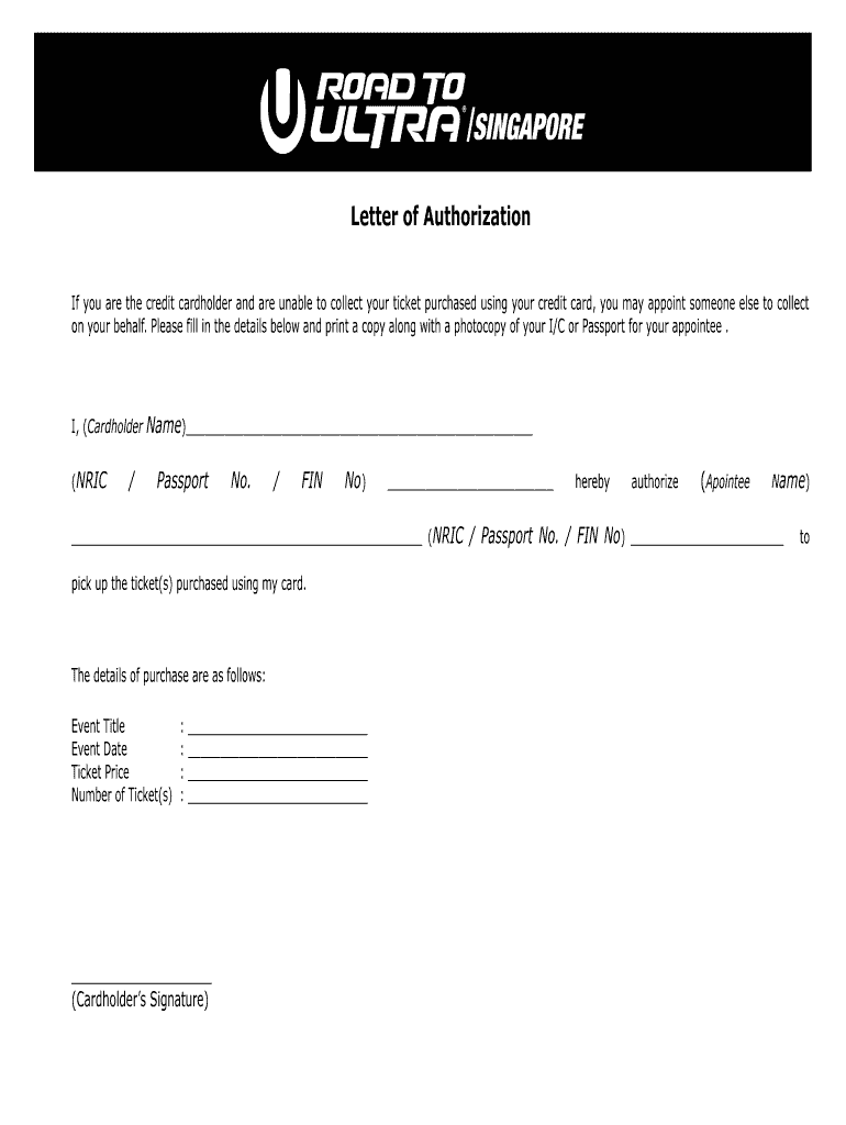 Letter of Authorization If you are the credit cardholder and are unable to collect your ticket purchased using your credit card, you may appoint someone else to collect on your behalf. Please fill