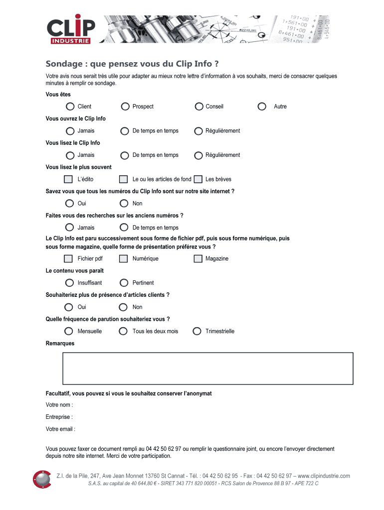 Get the free Sondage : que pensez vous du Clip Info - Clip Industrie