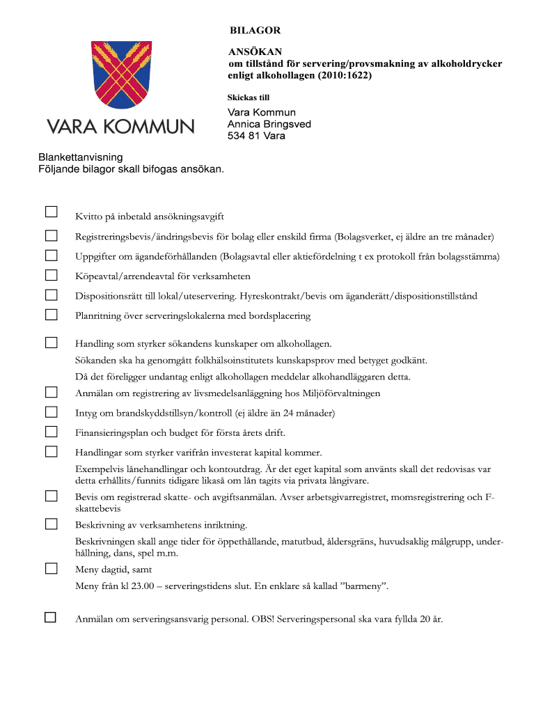 Get the free om tillstnd fr serveringprovsmakning av alkoholdrycker - vara