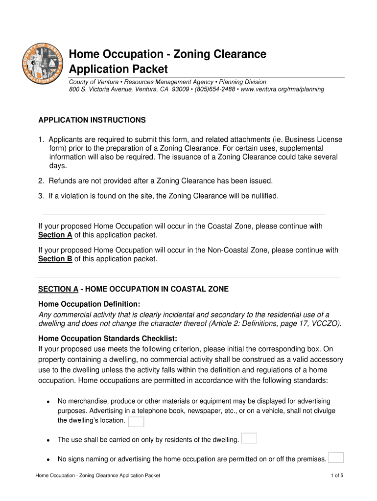 Get the free BHomeb Occupation - Zoning Clearance bb - County of Ventura - ventura