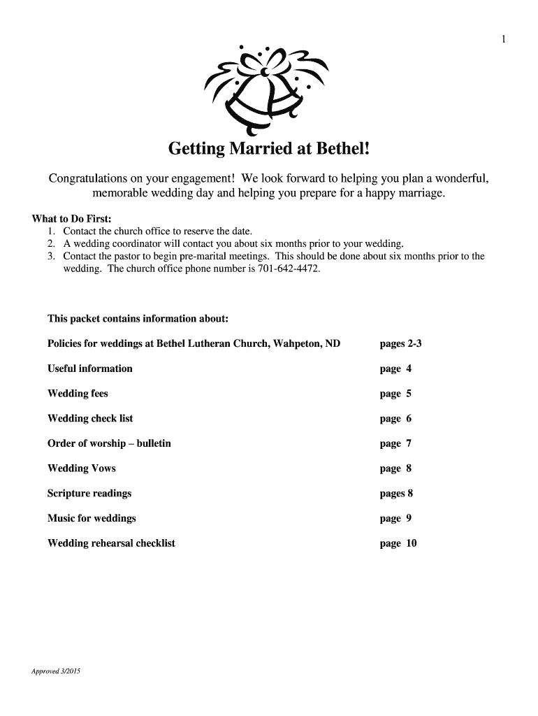 Get the free Policies for Weddings at Bethel Lutheran Church Wahpeton ND