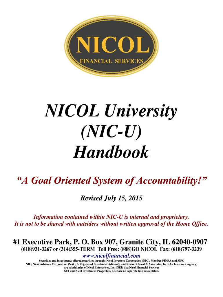 Get the free NICOL University (NIC-U) Handbook - Nicol Financial Services