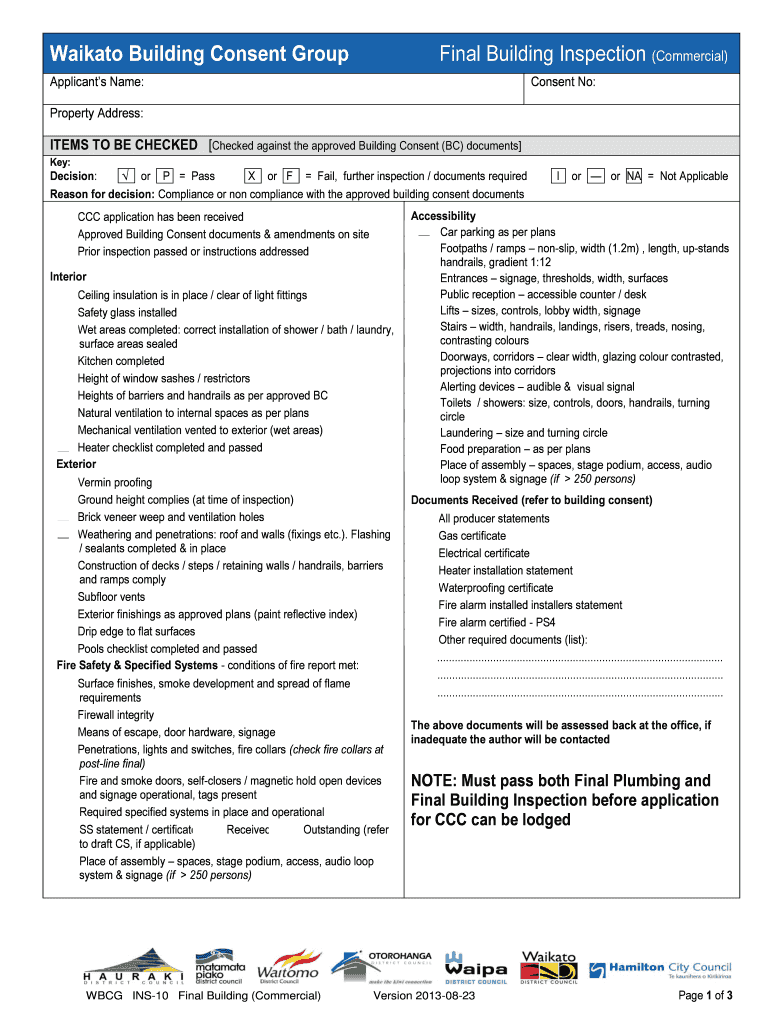 The Final Building Inspection Commercial Form is required for several types of projects within New Zealand. Eligibility criteria must be met for commercial projects to ensure that they are compliant with state-specific guidelines. Timely submission according to these guidelines is critical for a successful application.