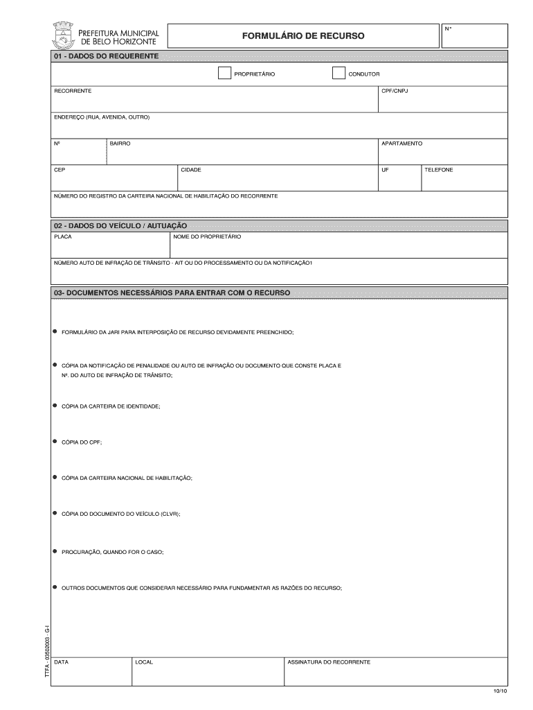 Obtenha o gratuito FORMULRIO DE RECURSO - portaldeservicospbhgovbr - portaldeservicos pbh gov