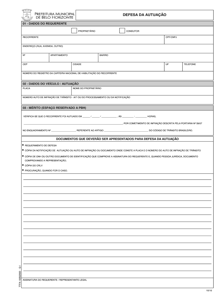 Obtenha o gratuito DEFESA DA AUTUAO - portaldeservicospbhgovbr - portaldeservicos pbh gov