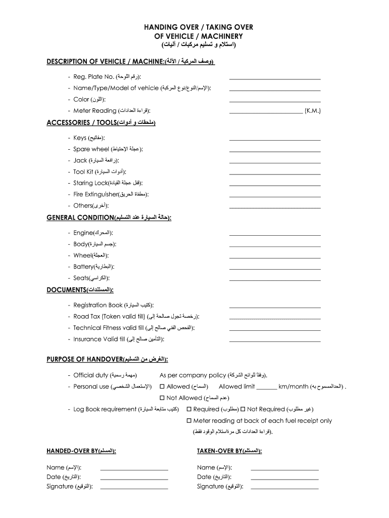 Get the free Vehicle-Handing-Over-Format-Eng-Arabic-2009doc - makco co