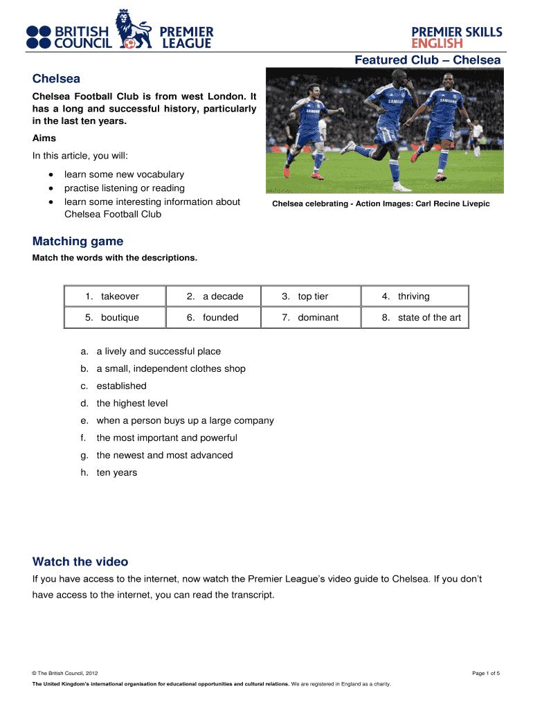 Get the free Featured Club Chelsea Chelsea Matching game Watch the video - premierskillsenglish b...