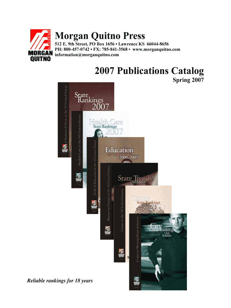 Morgan Quito Press 512 E. 9th Street, PO Box 1656 Lawrence KS 660448656 PH: 8004570742 FX: 7858413568 www.morganquitno.com information morganquitno.com 2007 Publications Catalog Spring 2007 Reliable