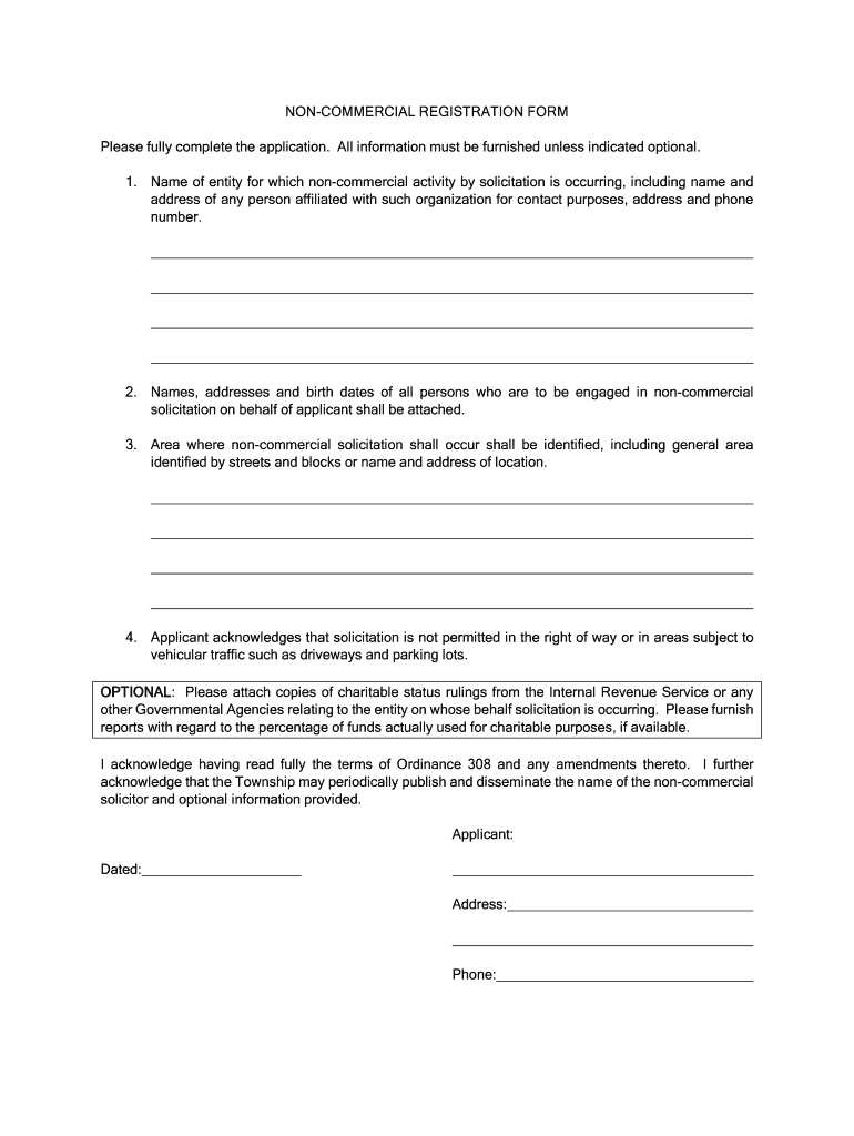 Community groups: Noncommercial registration forms may be required for community groups, clubs, or associations that engage in activities for the betterment of a specific community or cause.