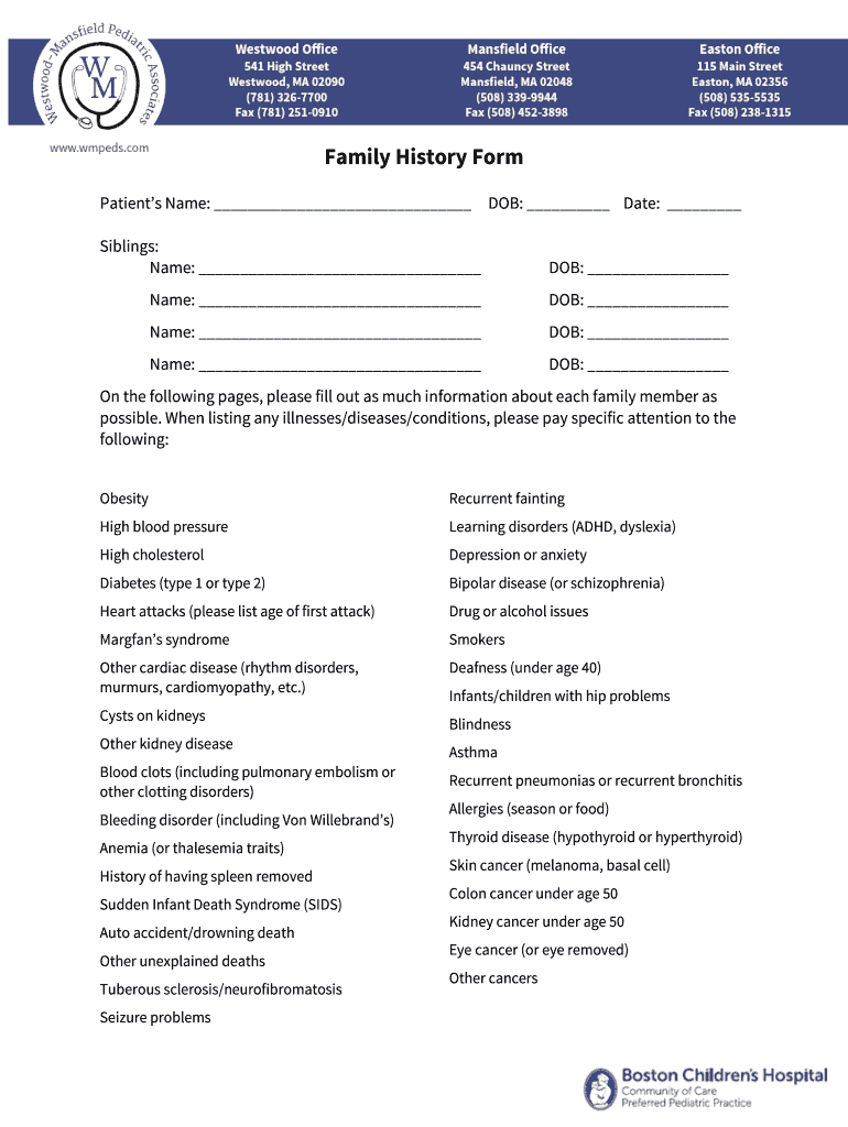 Get the free Family History Form - bwmpedsbbcomb