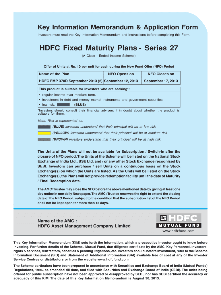 Who Needs the HDFC FMP 370D September 2013 Application Form?