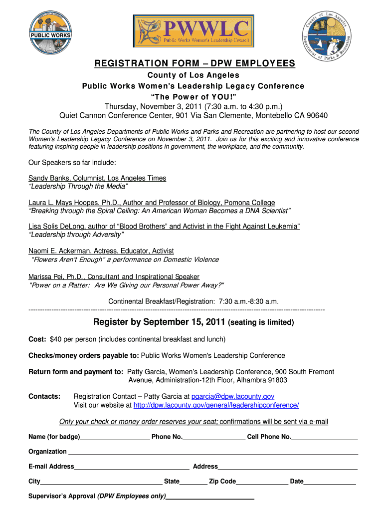 Get the free REGISTRATION FORM – DPW EMPLOYEES - dpw lacounty