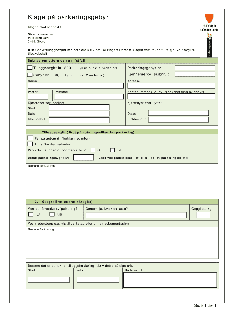 Get the free Klage p parkeringsgebyr - Stord kommune