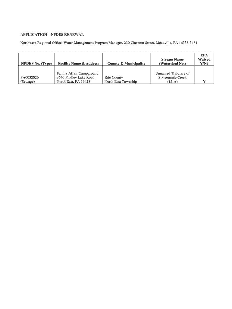 Get the free APPLICATION – NPDES RENEWAL - files dep state pa