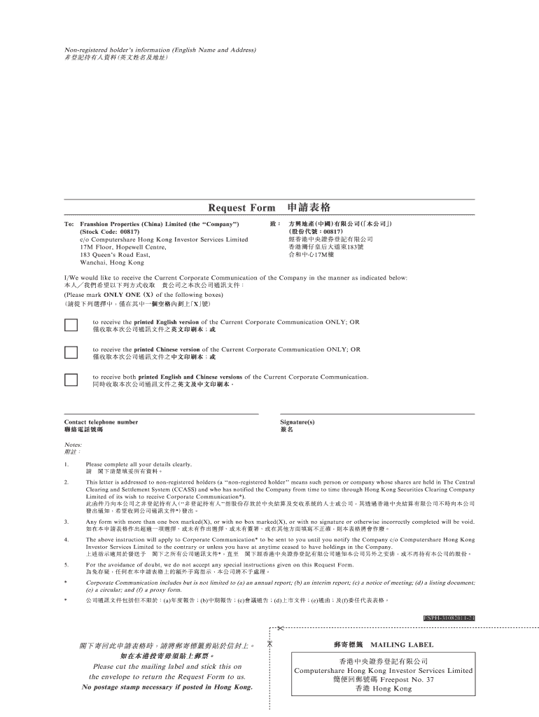 Get the free Nonregistered holders information (English Name and Address) Request Form Franshion ...