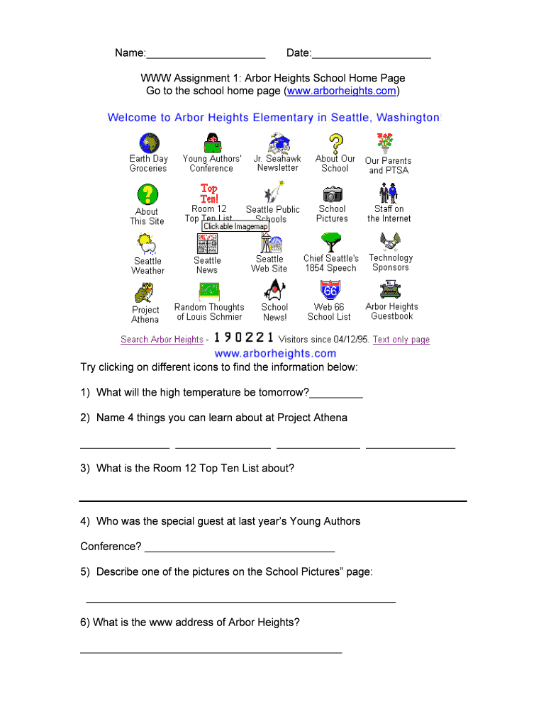 Name: Date: WWW Assignment 1: Arbor Heights School Home Page Go to the school home page (www.arborheights.com)