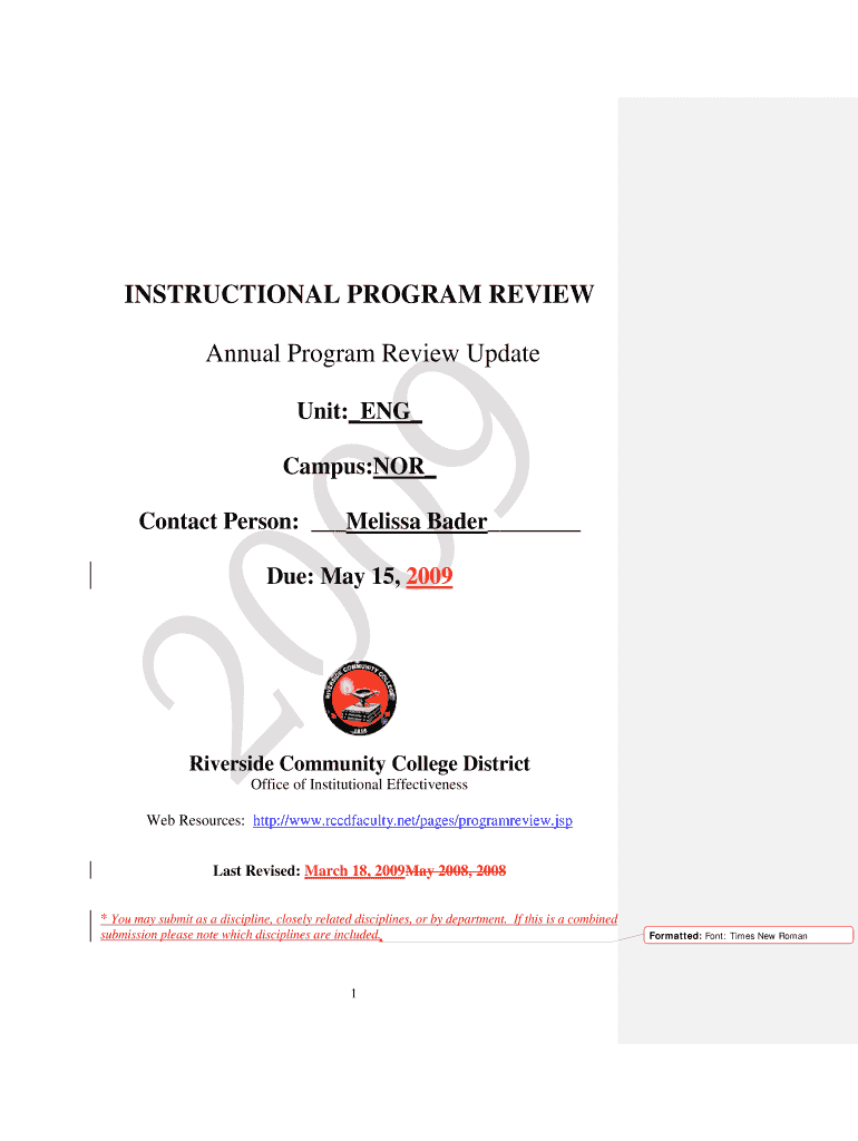 This document serves as a template for the Annual Program Review Update for various educational units within the Riverside Community College District. It outlines instructions for conducting a self-study,