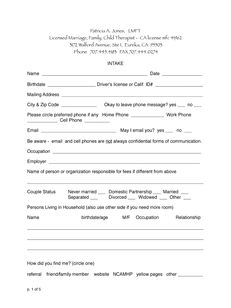 Get the free Adult Intake Form - Patriciajonesmft.com