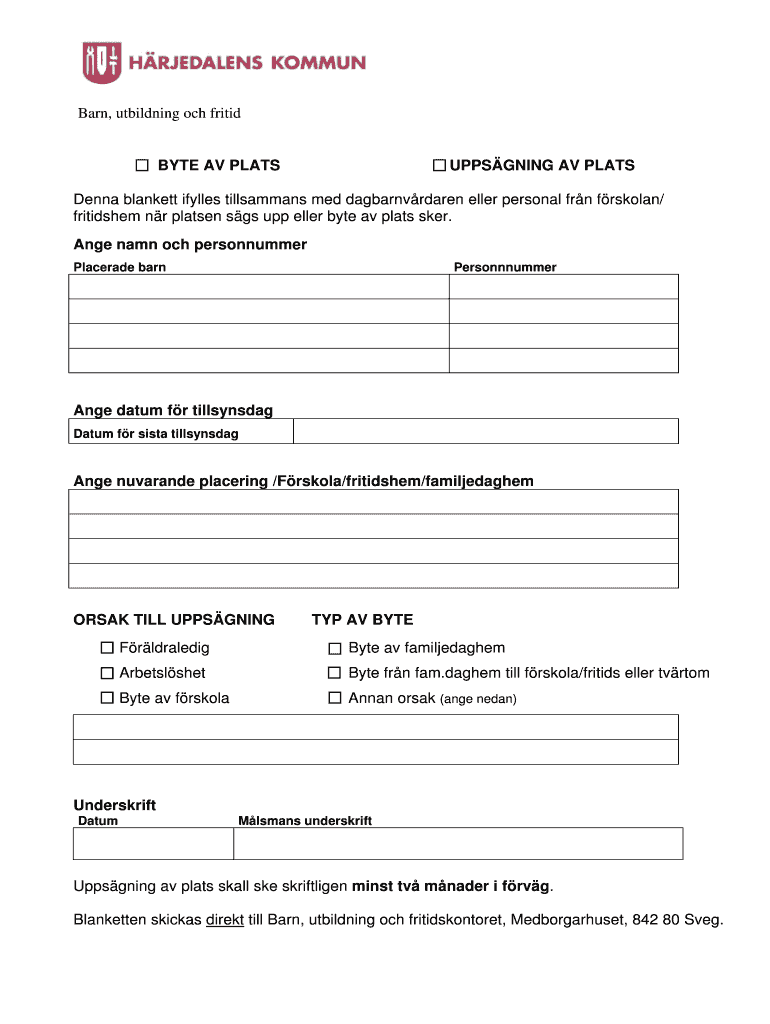 Get the free BYTE AV PLATS UPPSGNING AV PLATS - kommunherjedalense