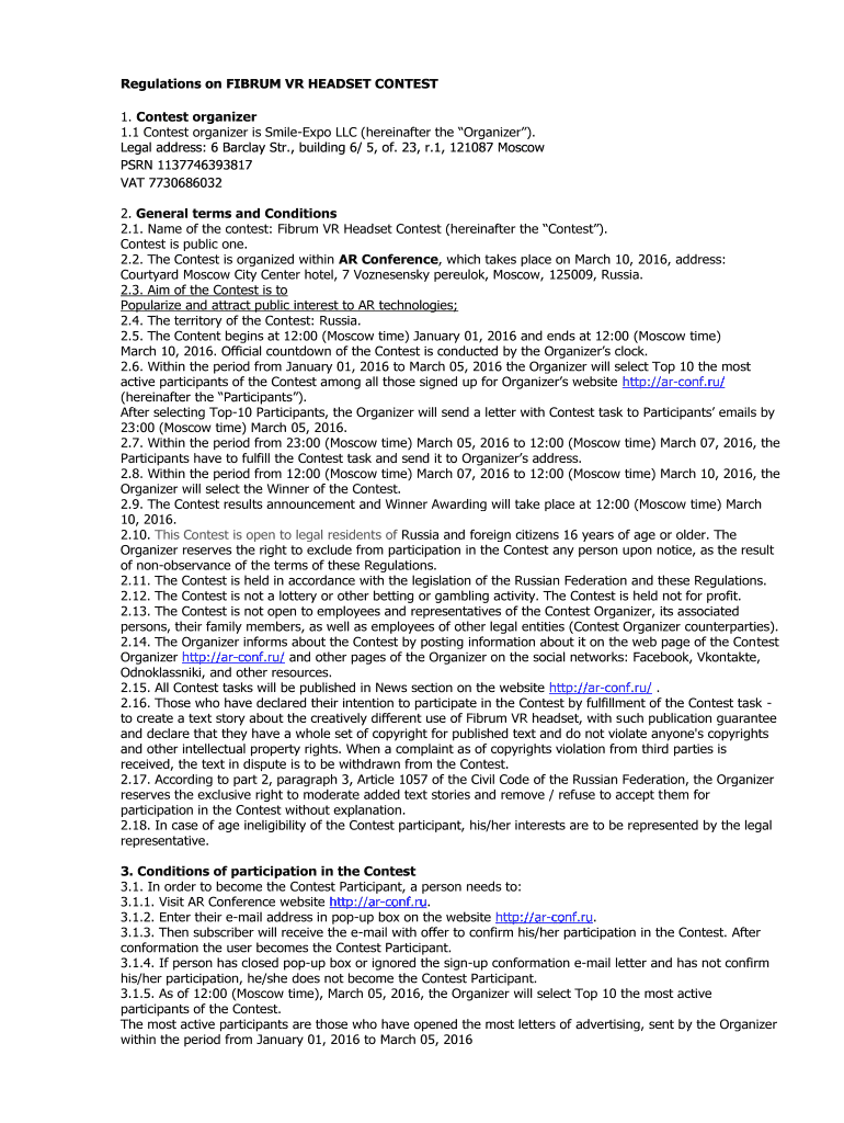 Get the free Regulations on FIBRUM VR HEADSET CONTEST Contest organizer - smileexpo