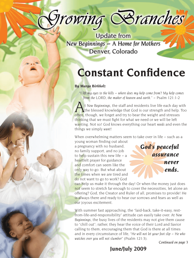 Constant Confidence By Margo Borehole I lift my eyes to the hills where does my help come from? My help comes from the LORD, the maker of heaven and earth. Psalm 121:12 A t New Beginnings, the staff