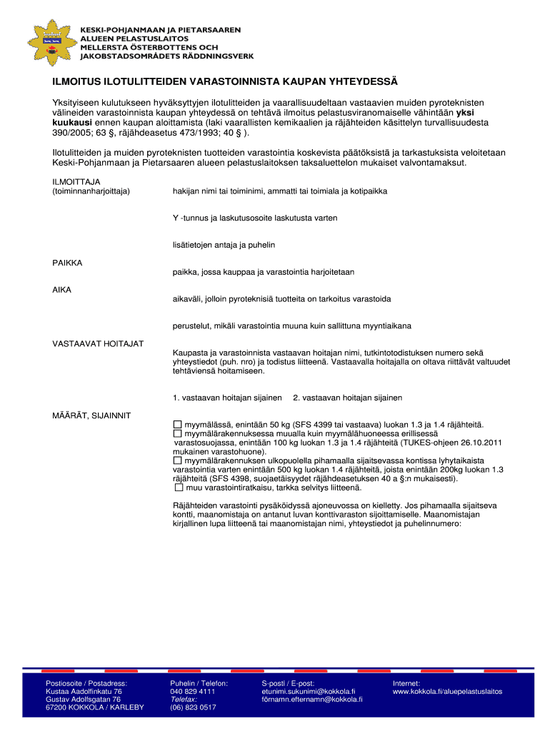 Anyone purchasing and using yksityiseen kulutukseen hyvksyttyjen ilotulitteiden is required to file for them.