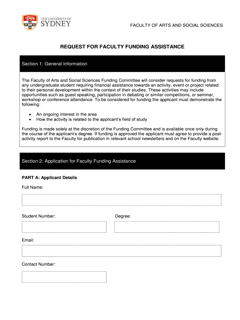 Get the free Request for Faculty Funding Assistance - sydney edu