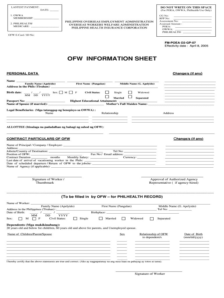 How to fill out the ofw information sheet