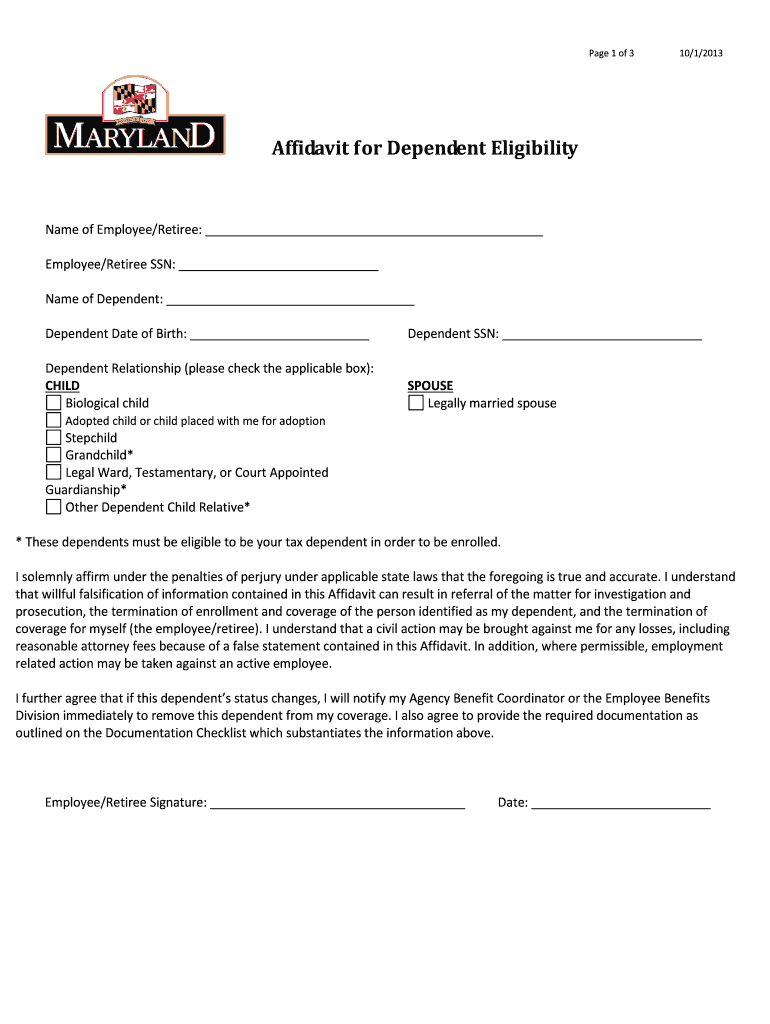 Get the free Affidavit for Dependent Eligibility