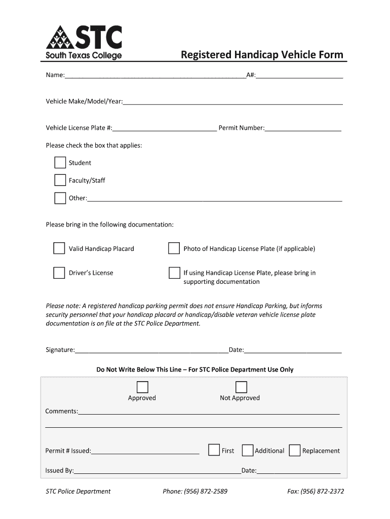 Get the free Registered Handicap Vehicle Form - police southtexascollege