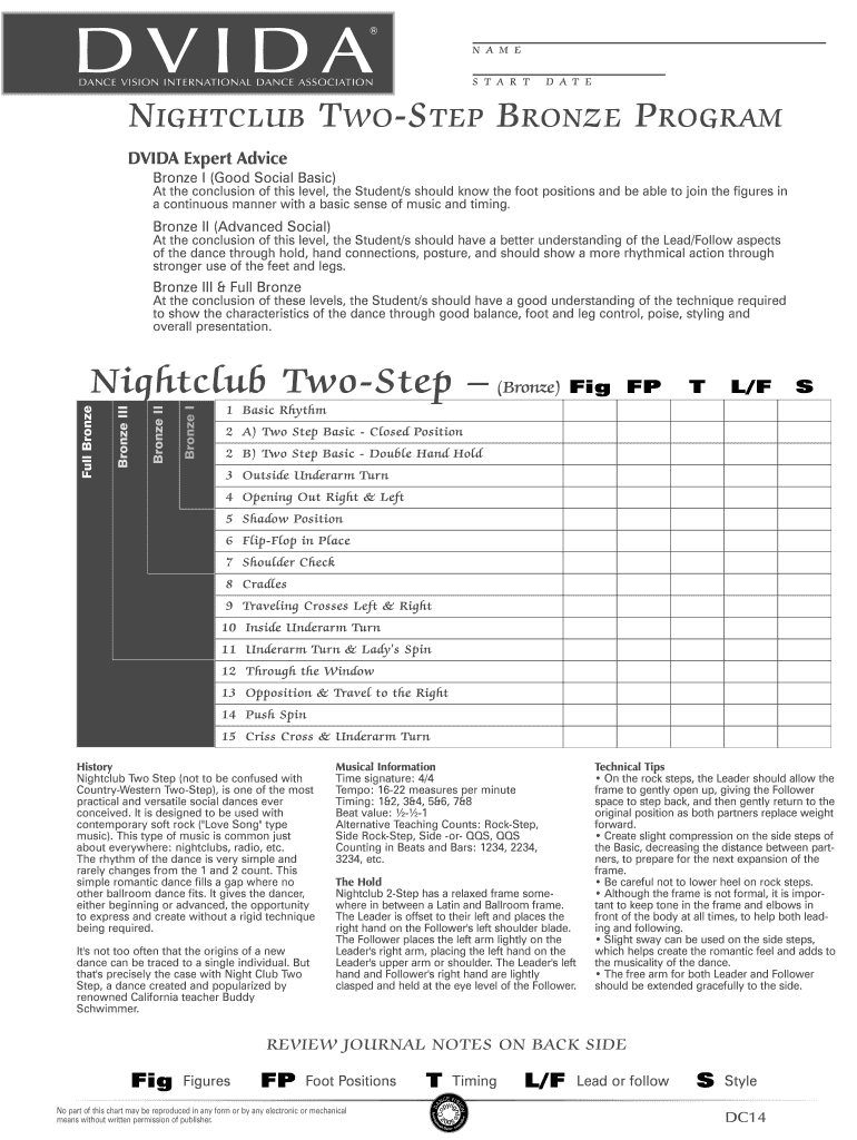 DVINA N A M E S T A R T DANCE VISION INTERNATIONAL DANCE ASSOCIATION D A T E N NIGHTCLUB T TO S TEP B BRONZE P PROGRAM DVINA Expert Advice Bronze I (Good Social Basic) At the conclusion of this level,