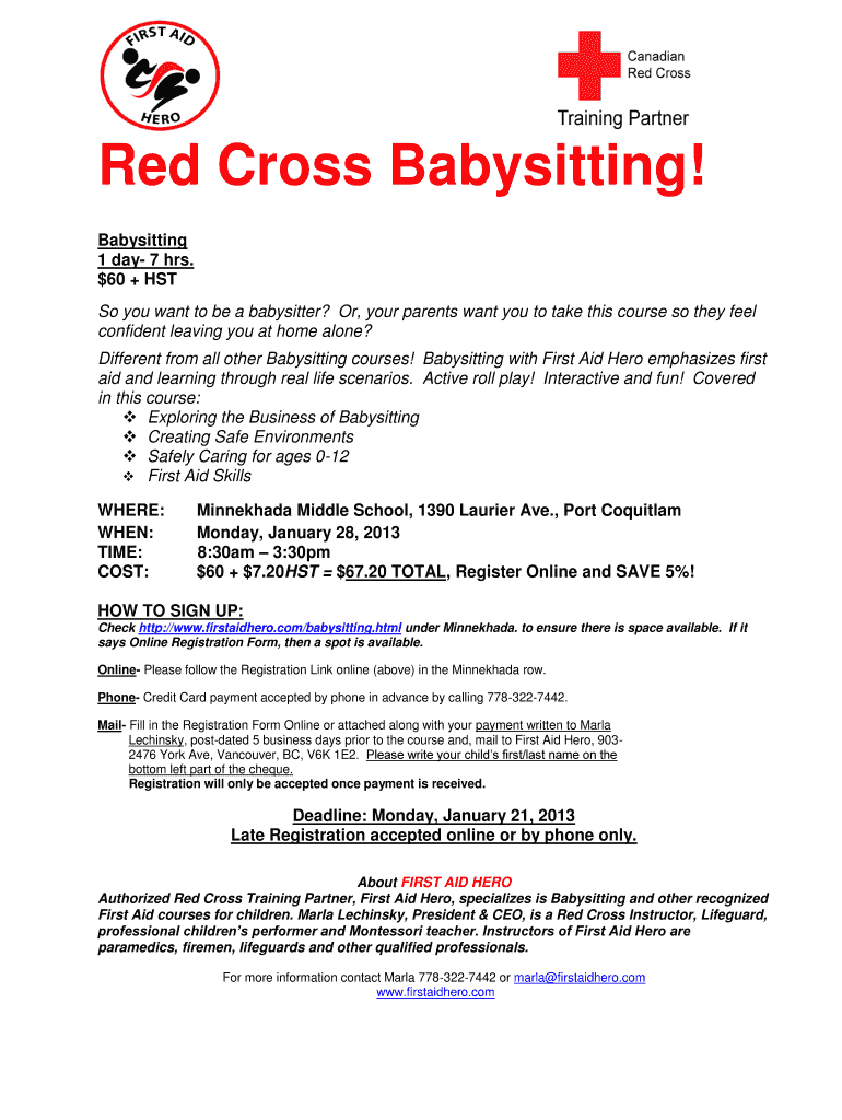 Get the free Red Cross Babysitting - SD43