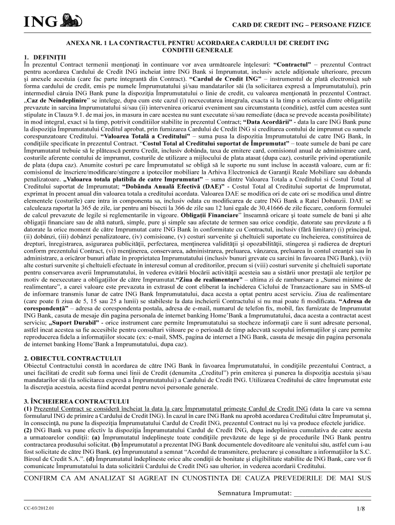 CARD DE CREDIT ING PERSON FINITE Alexa NR. 1 la Contractual entry Cordelia Calculus DE Credit ING CONDITION GENERAL 1. DEFINING n present Contract termini mentioned n continual VOR area urmtoarele