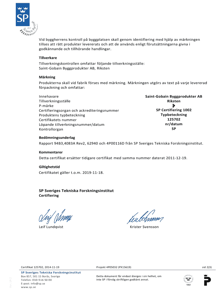 Certificate 125702 Nedanstende product och×elder tillverkningskontroll heir beats uppfylla Coverlets Byggregler (BBR) i de ascended och under de frutsttningar some ages i Delta certificate. Torrbruk,