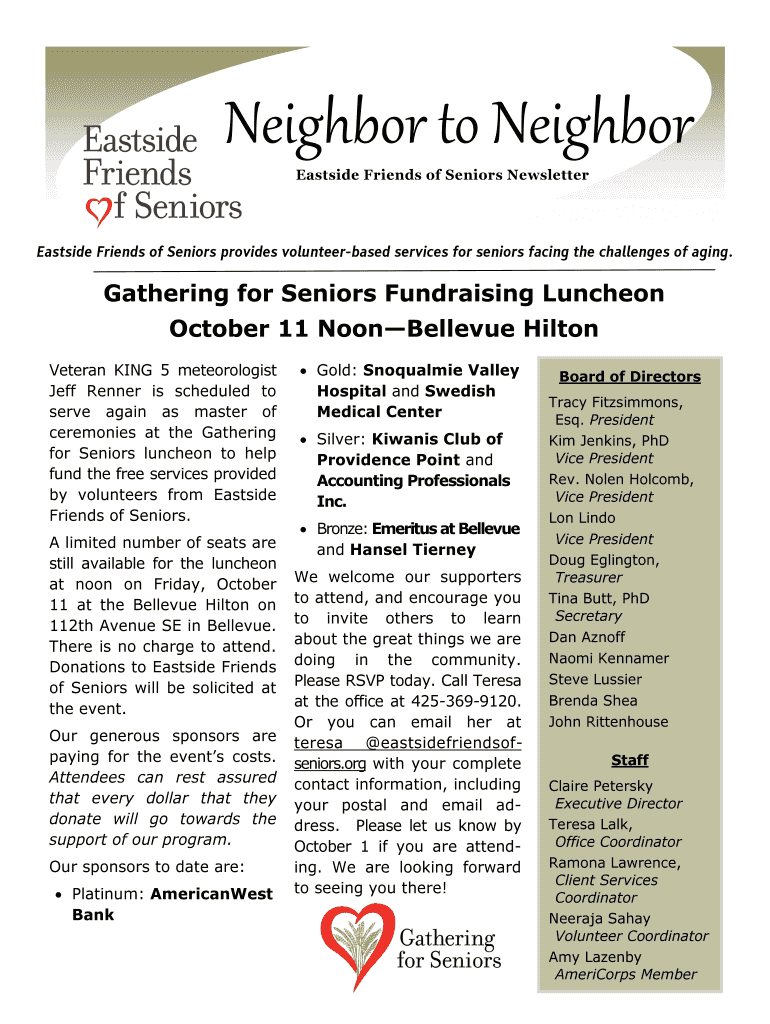 Get the free Neighbor to Neighbor - Supporting Senior Independence - eastsidefriendsofseniors