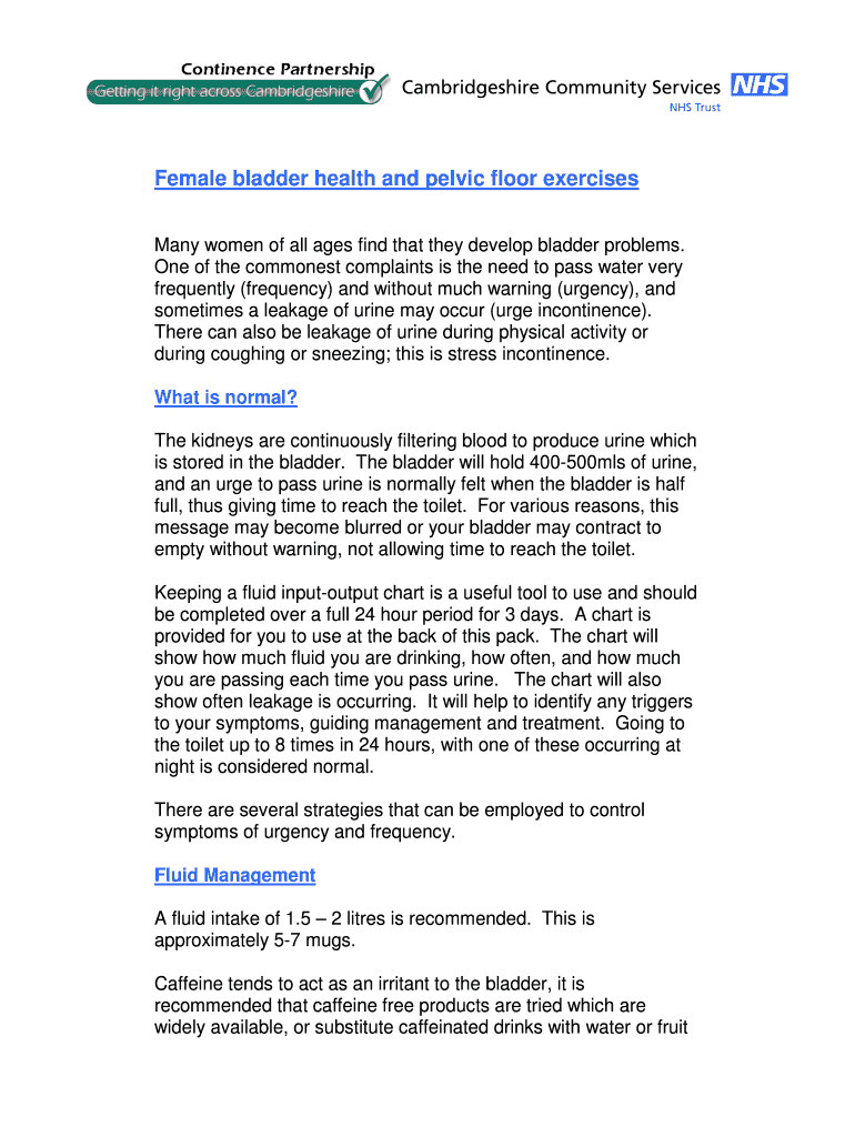 Get the free Female bladder health and pelvic floor exercises
