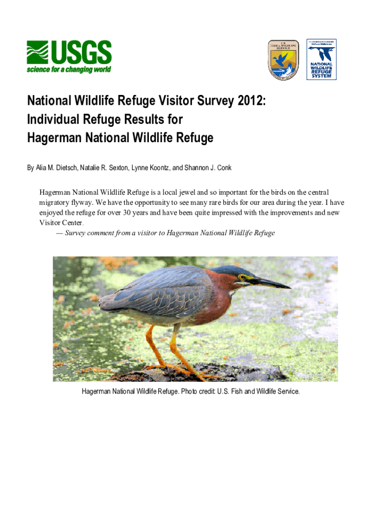 Start by downloading the National Wildlife Refuge Visitor Survey 2012: Individual Refuge Results for Hagerman National Wildlife Refuge from the official website.