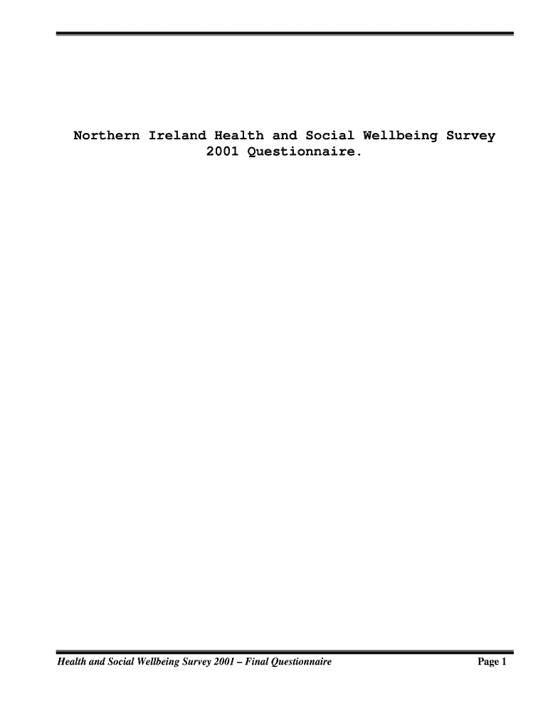 Get the free Northern Ireland Health and Social Wellbeing Survey 2001 - lifestylesurvey org